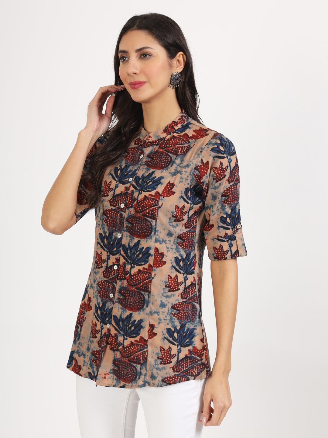 PRINTED SHIRT-STYLE TOP
