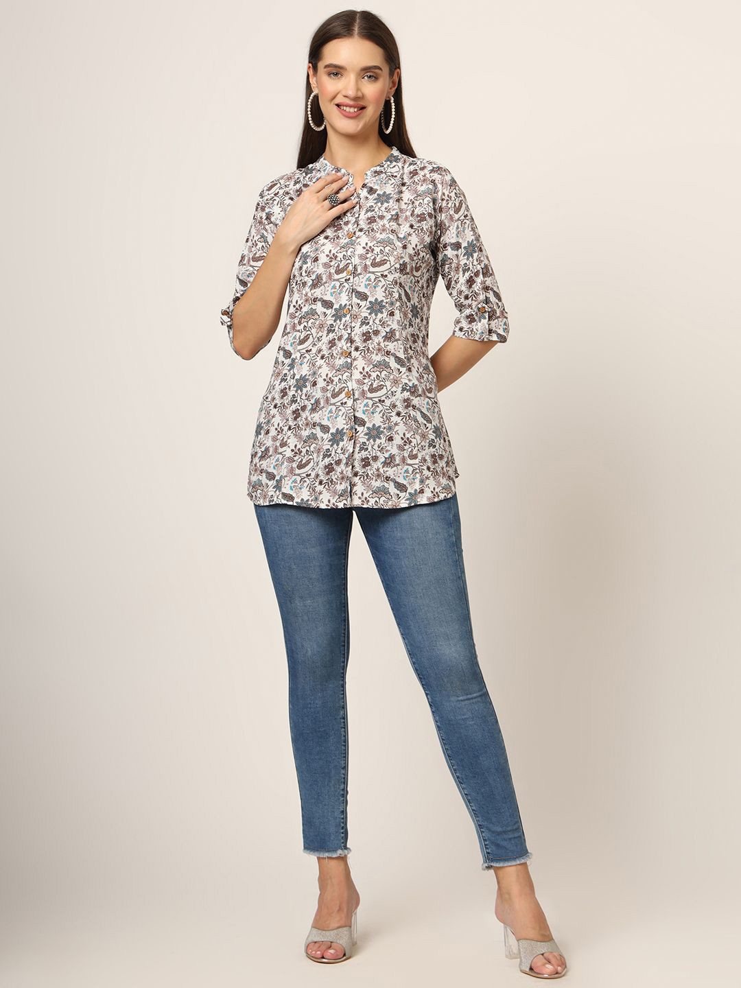- Mandarin collar, three-quarter, regular sleeves sleeves