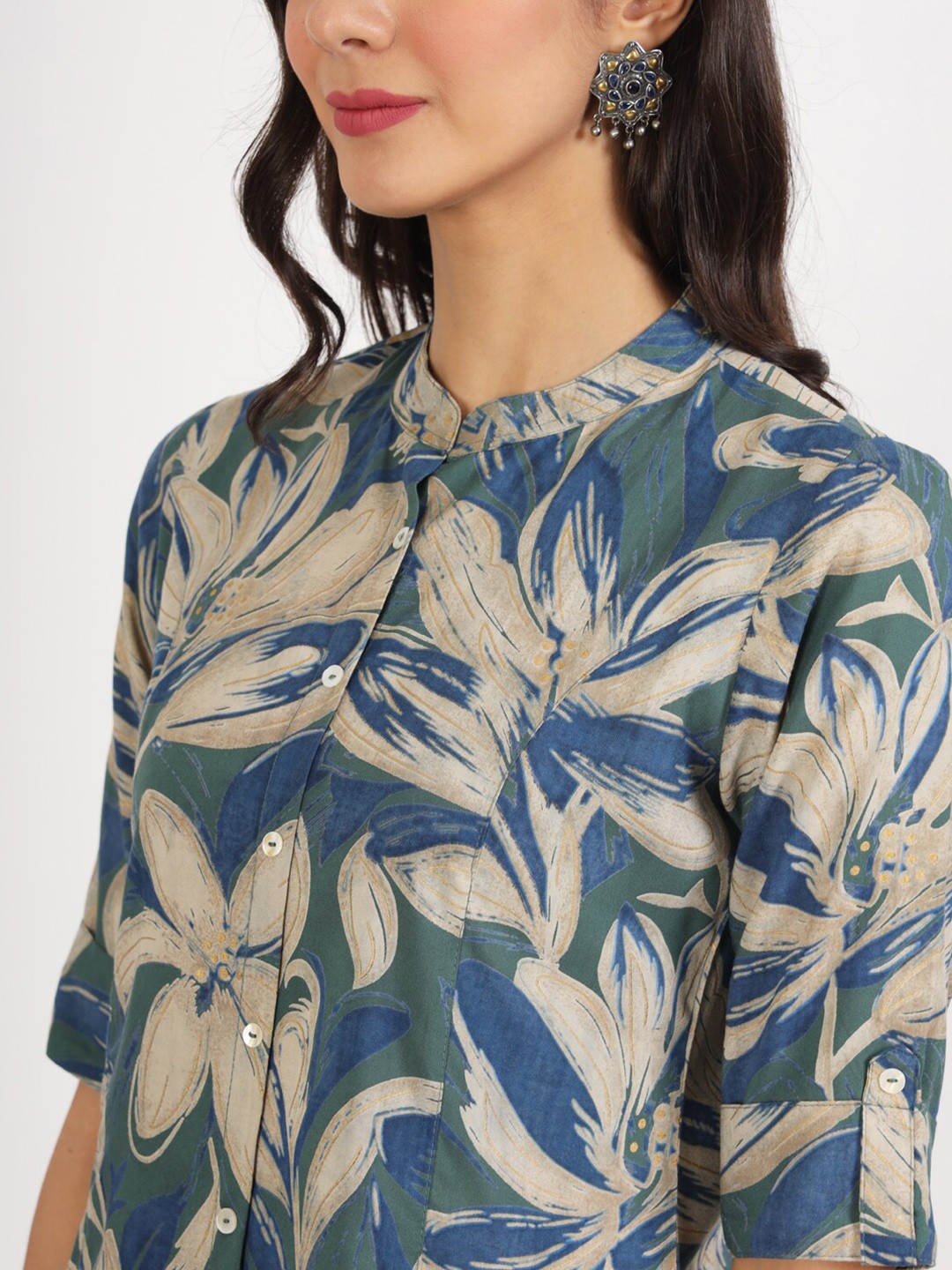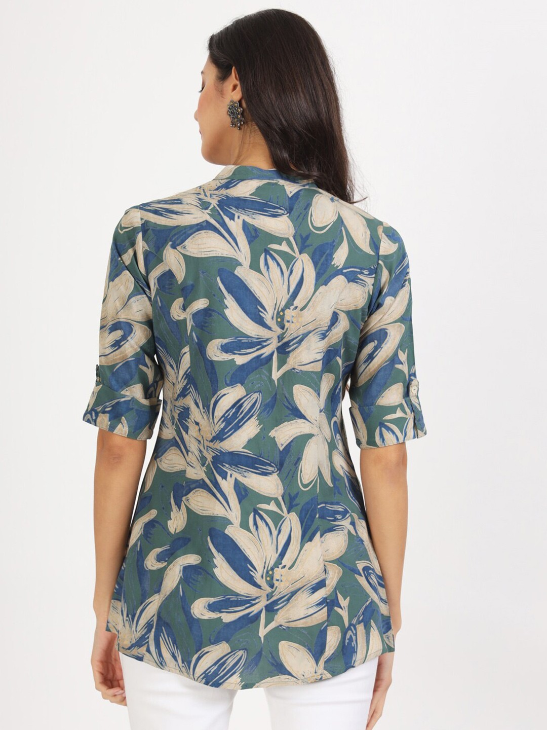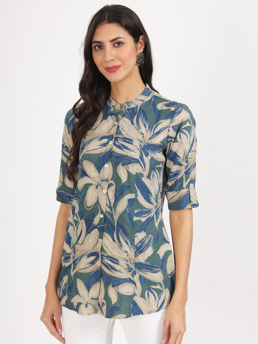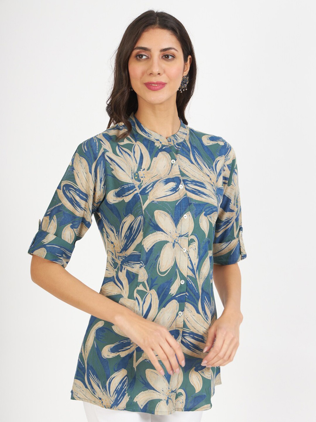 - Mandarin collar, three-quarter, regular sleeves sleeves