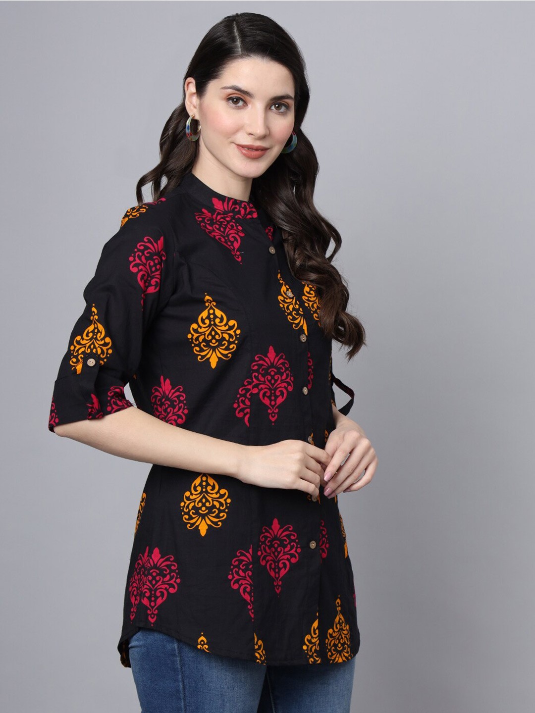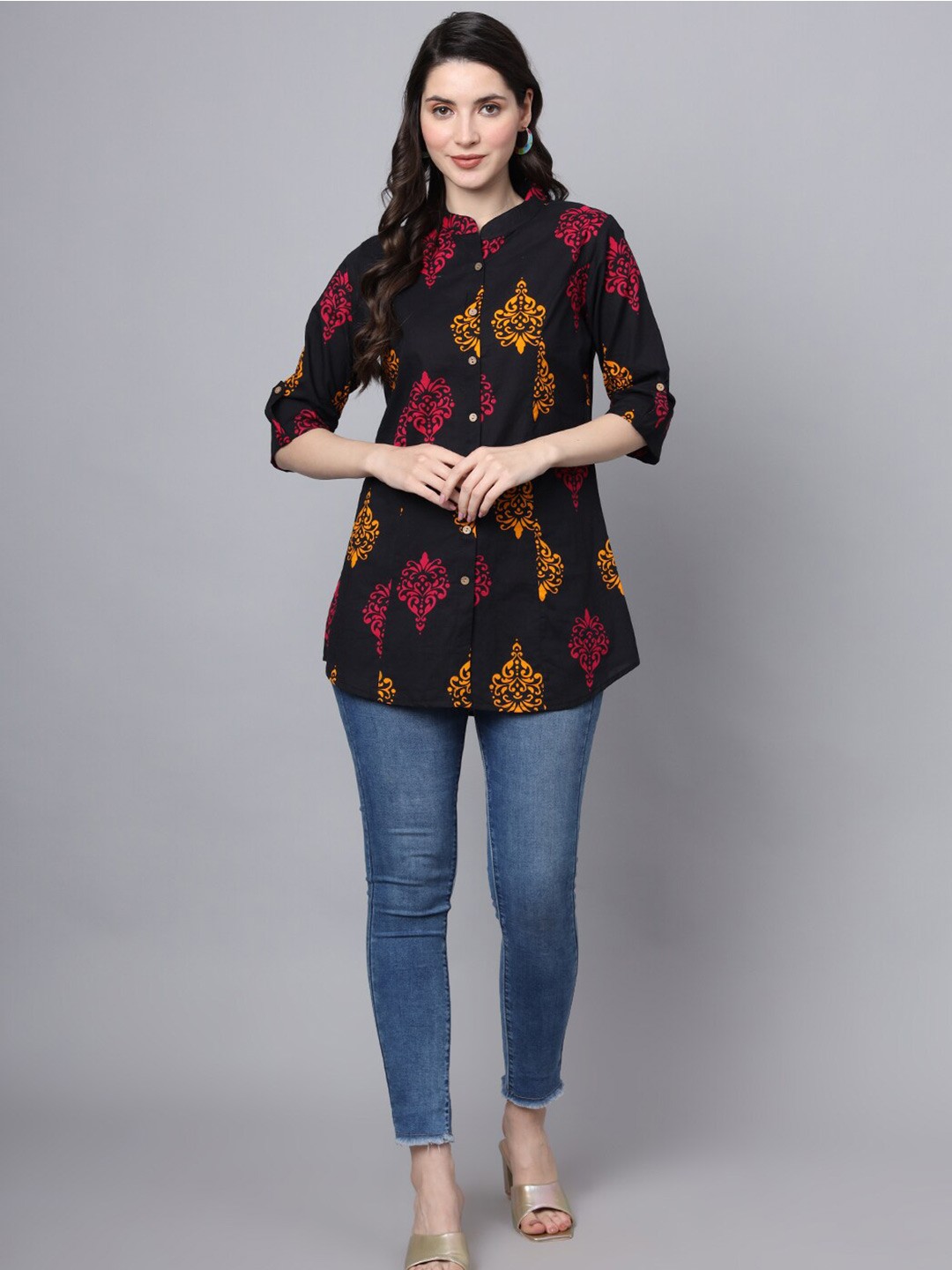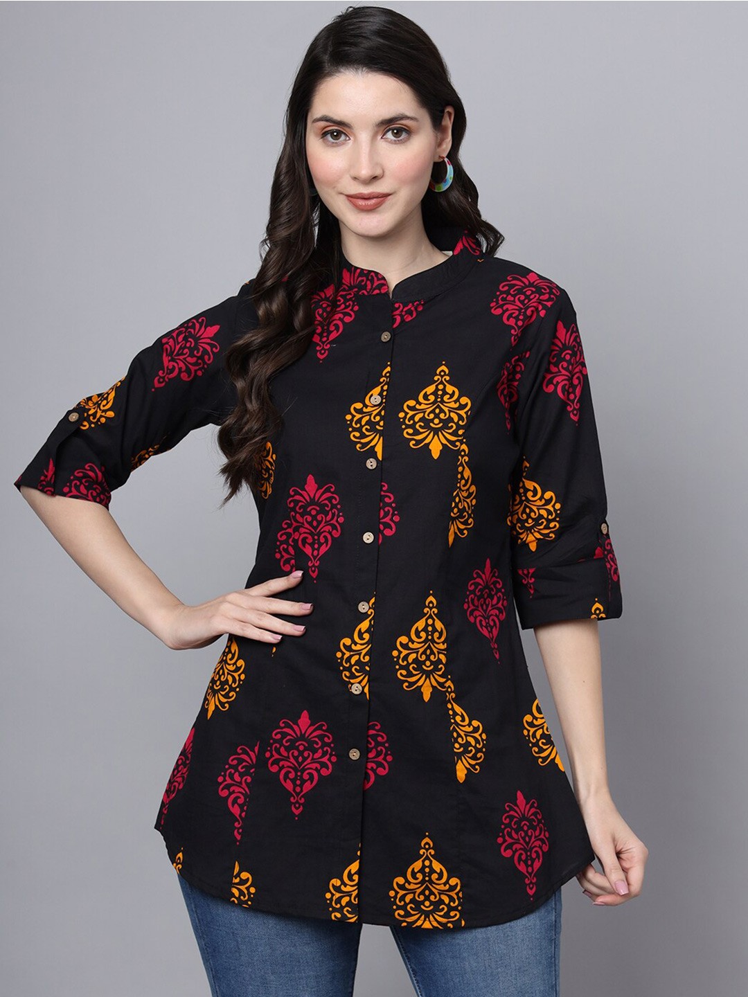 Women's Printed Mandarin Collar Shirt Style Top