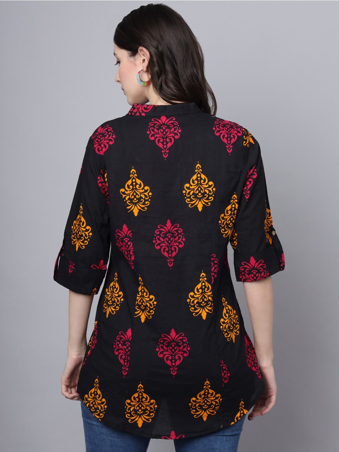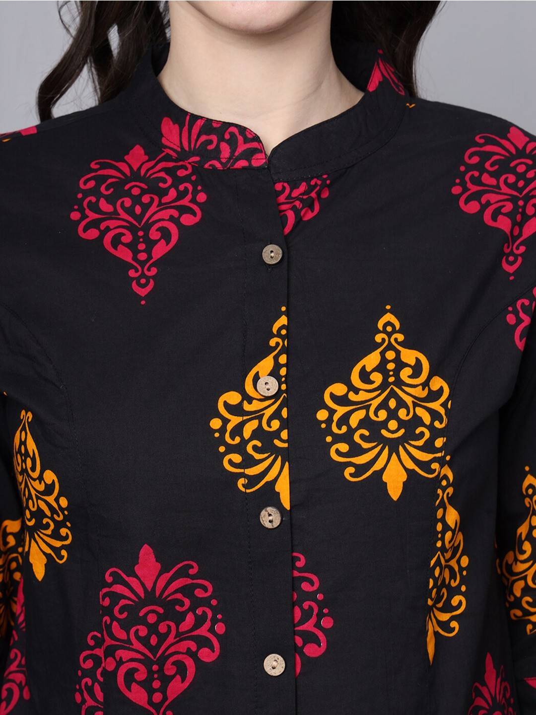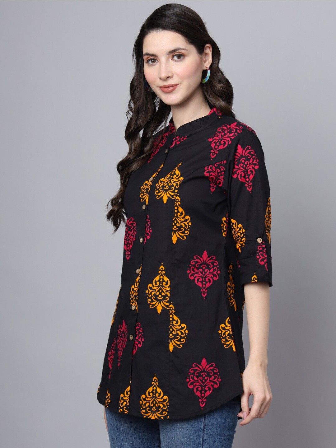 Women's Printed Mandarin Collar Shirt Style Top