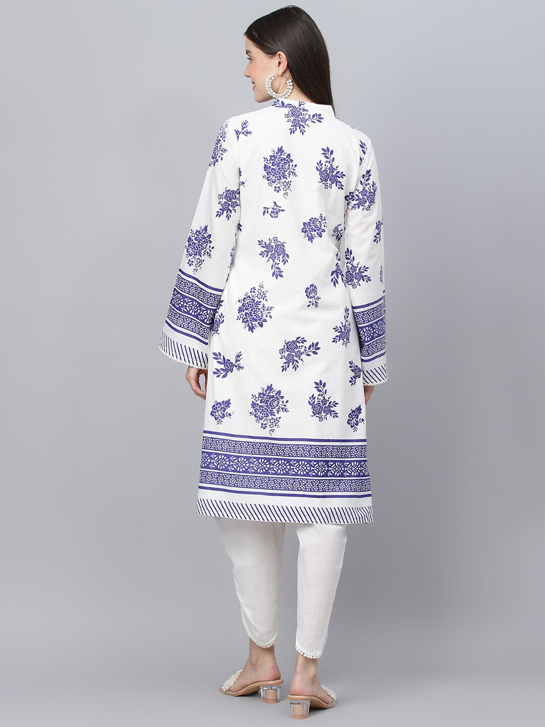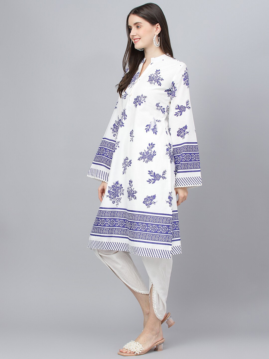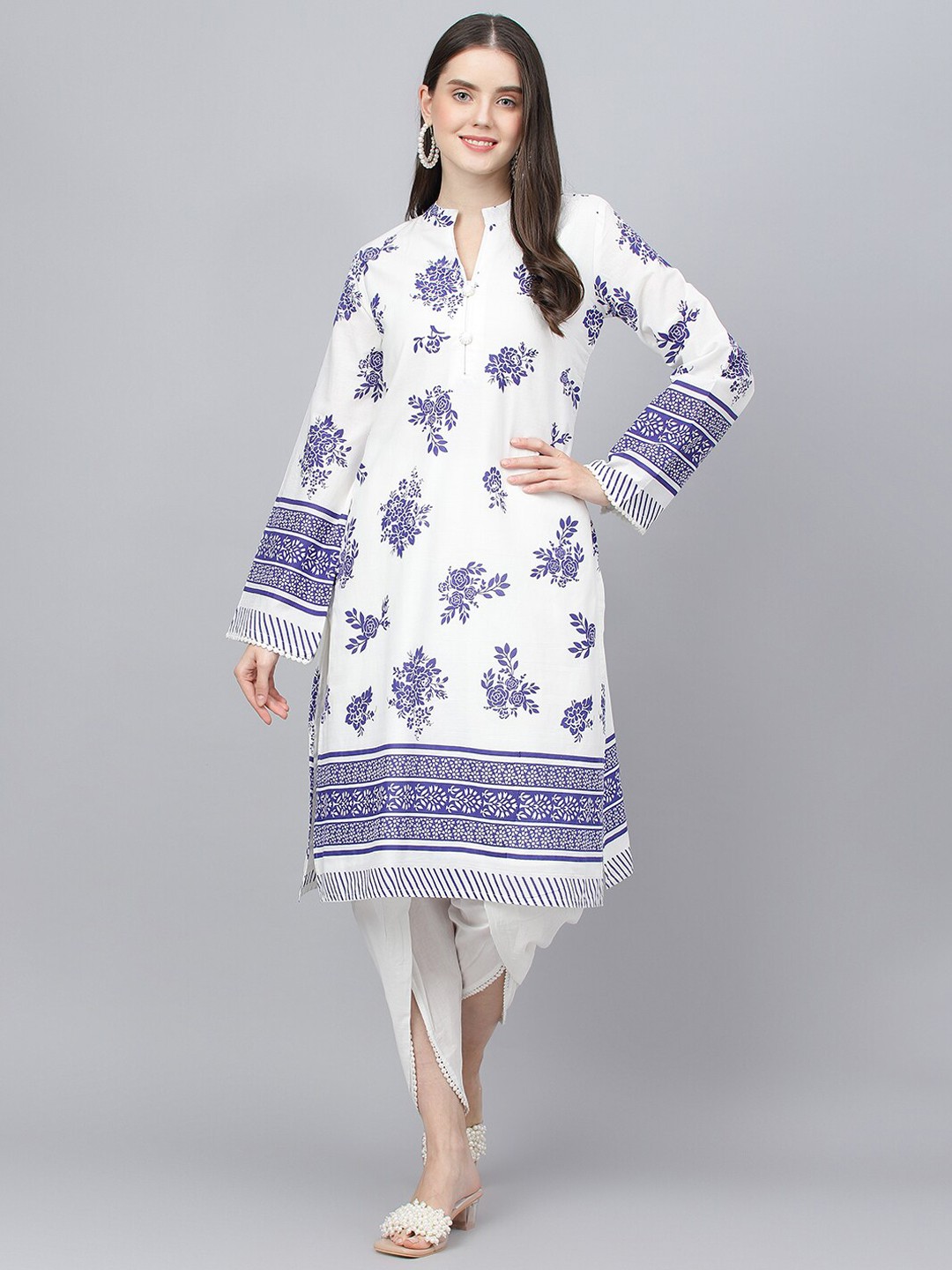 White printed Kurta with Dhoti Pants