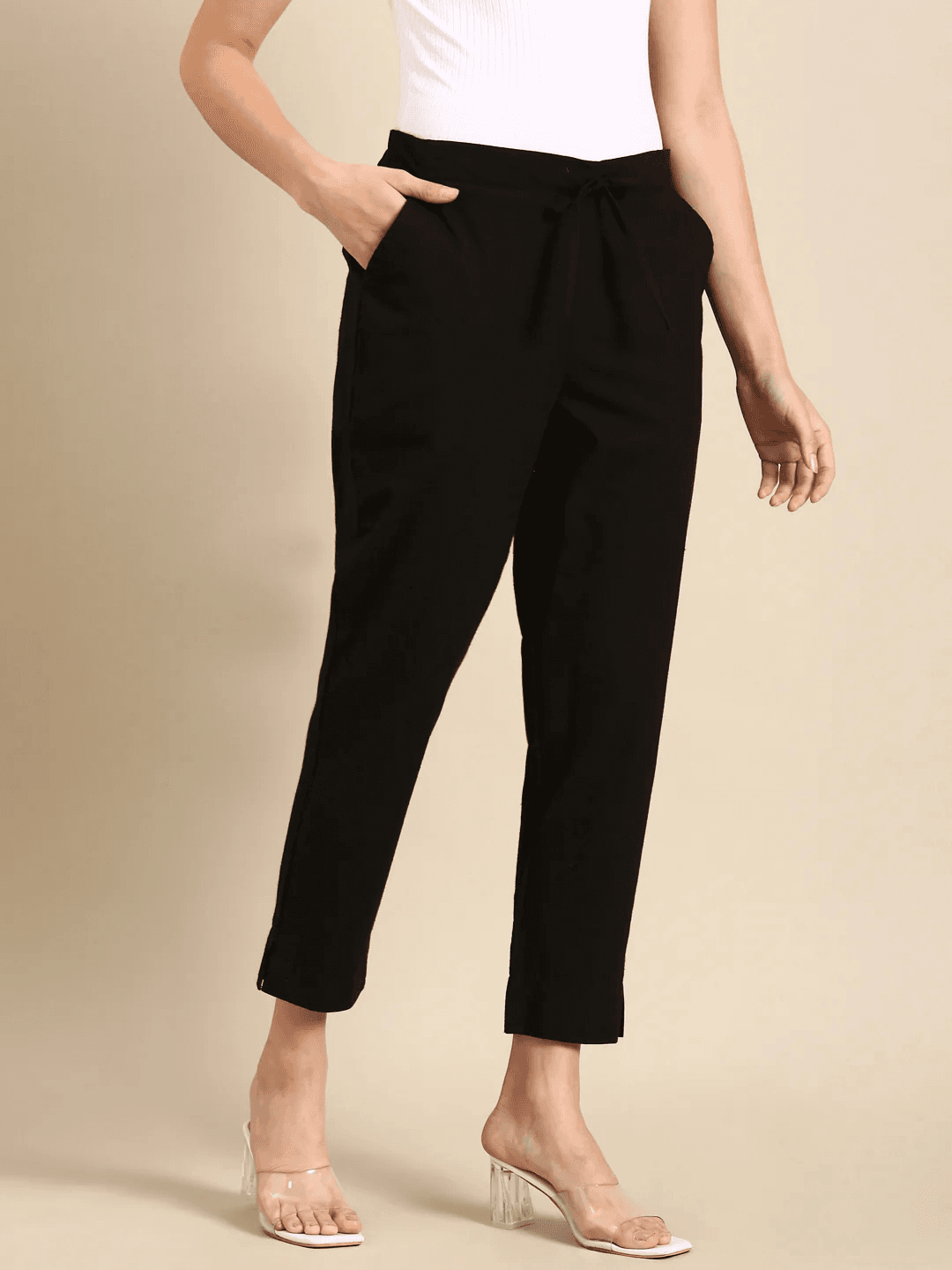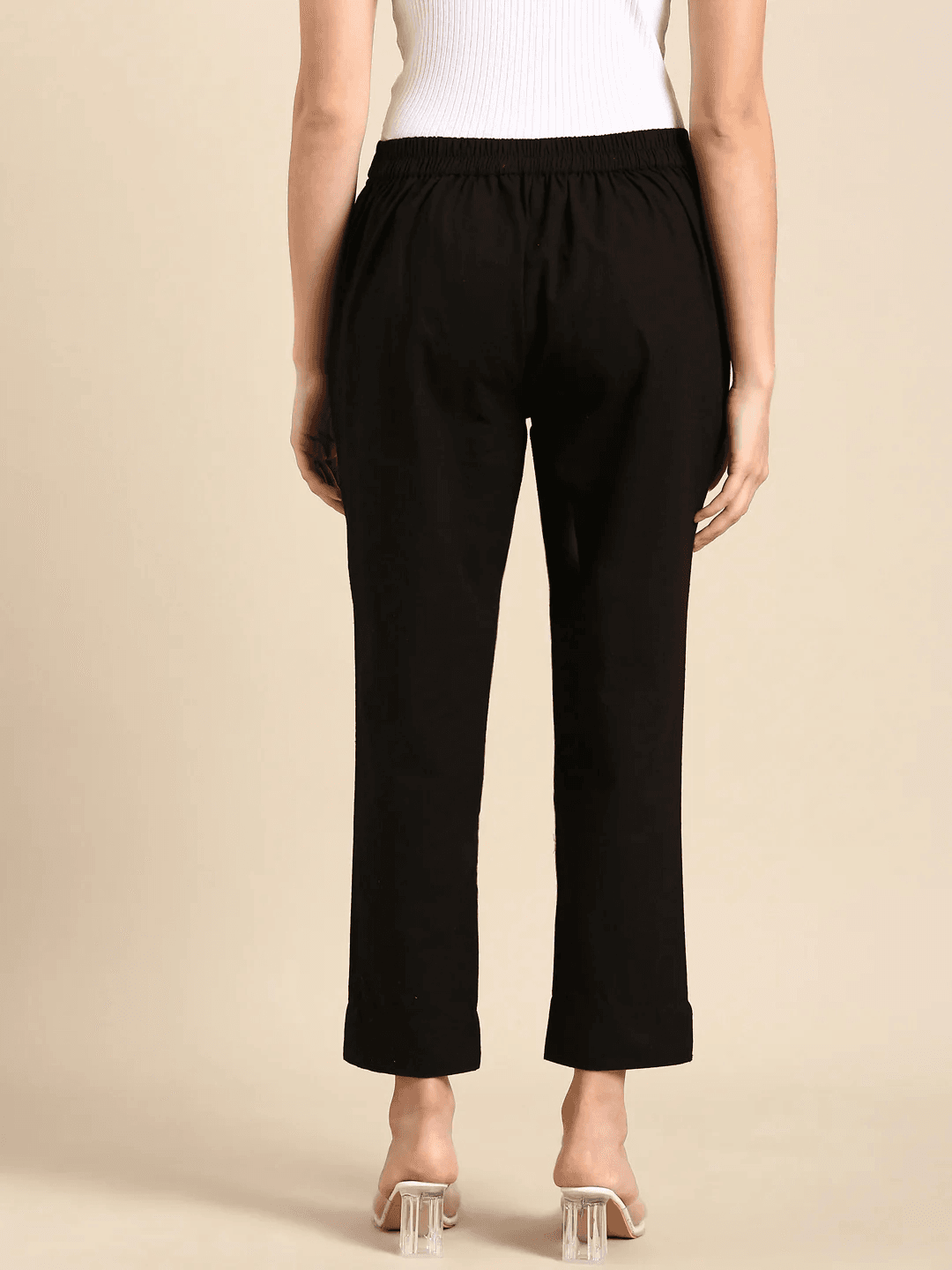 Women Solid Black Cotton Classic Pants