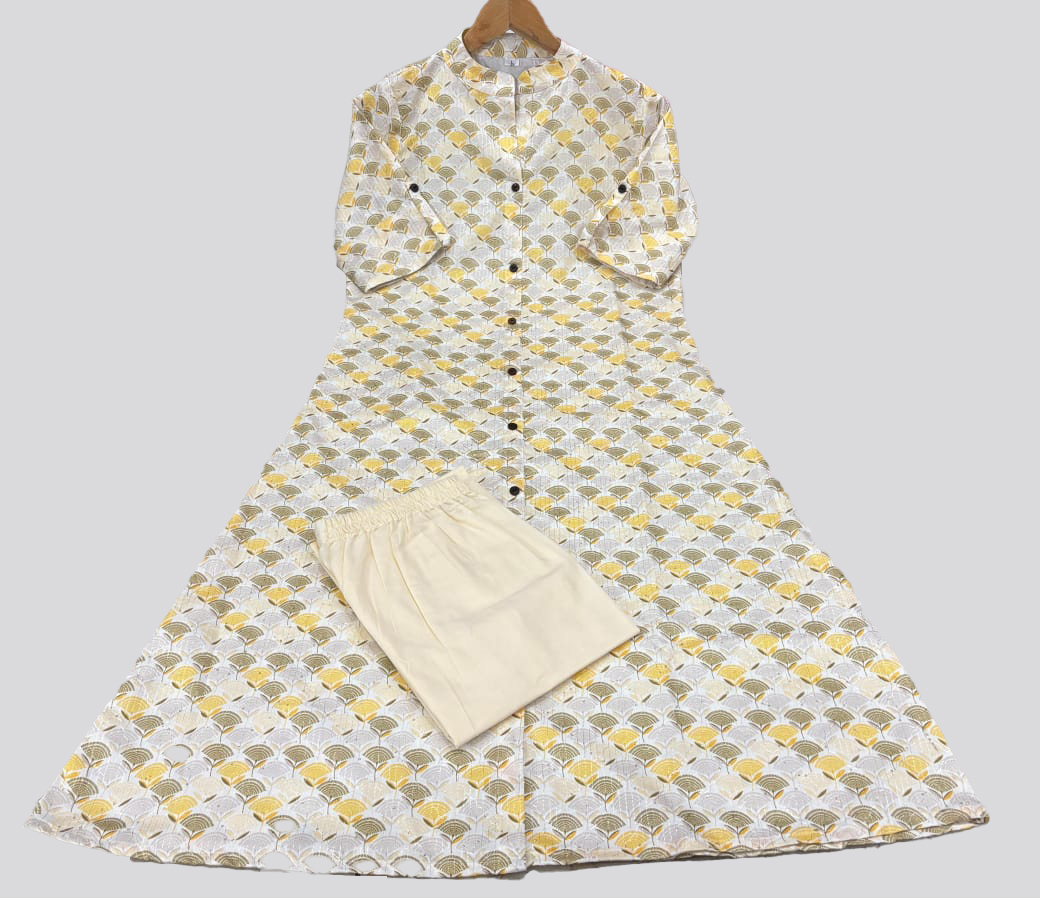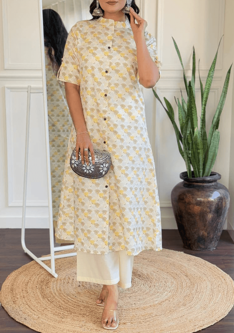 Abstract Yellow Printed Cotton Kurta and Pant Set