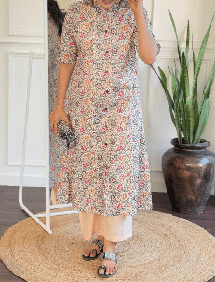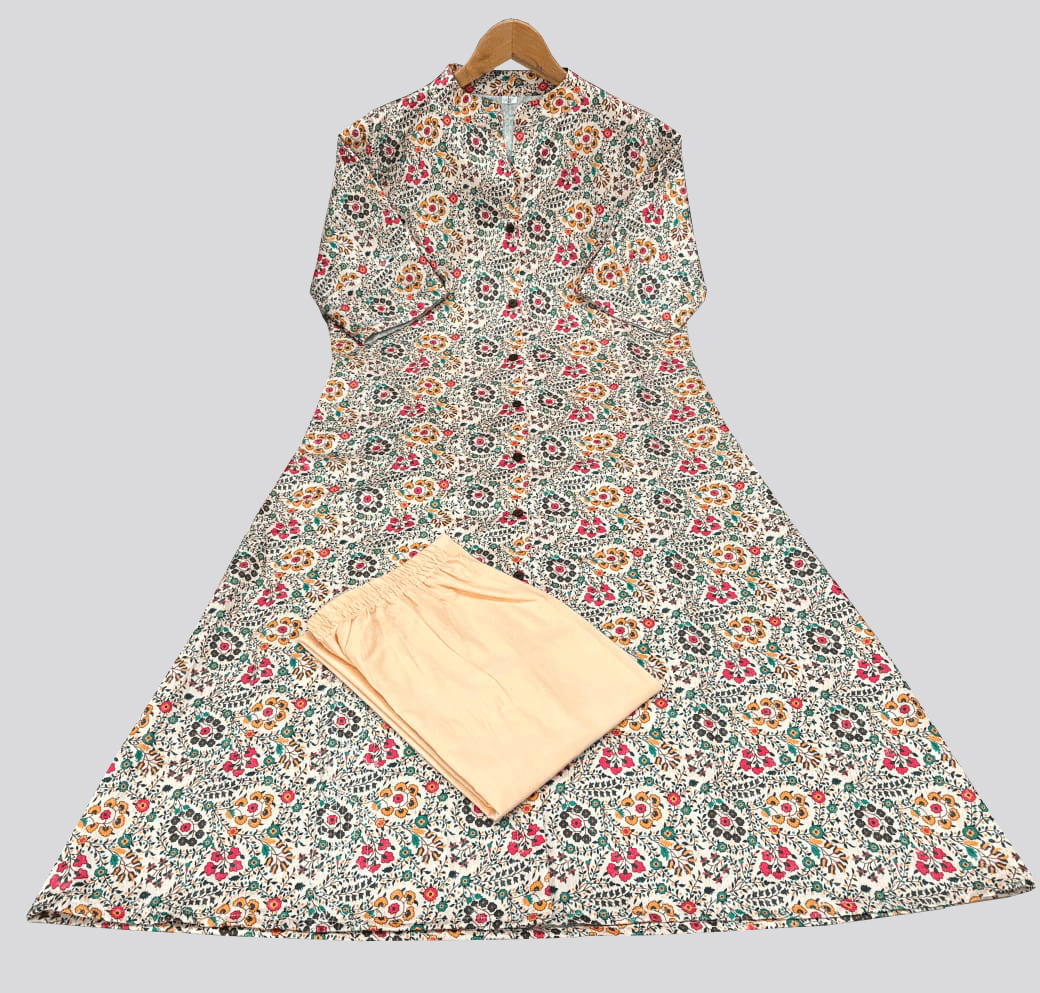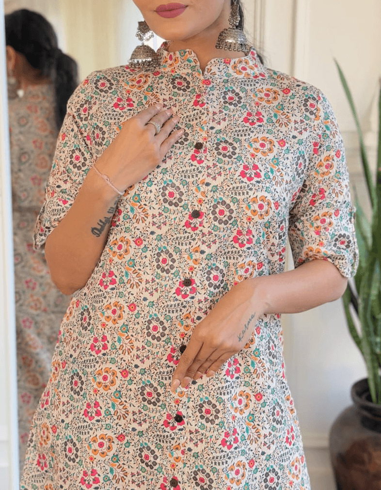 Abstract Multicolour Printed Cotton Kurta and Pant Set