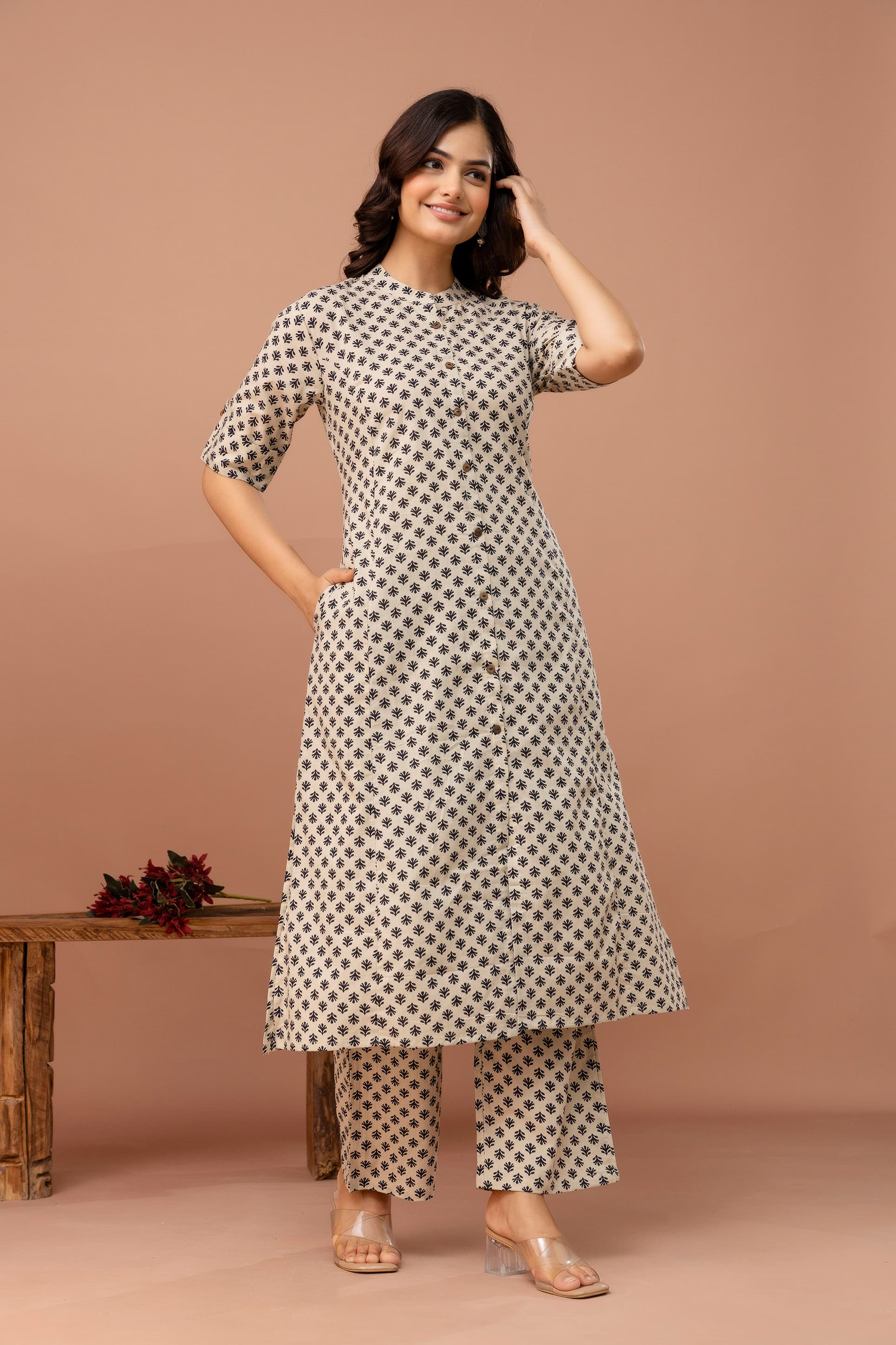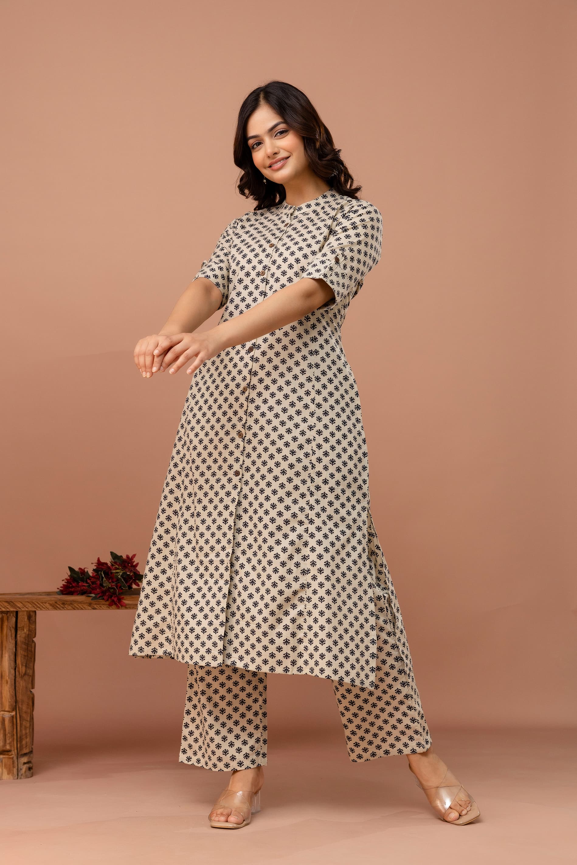 Black Beige Printed A-line Co-ord Set