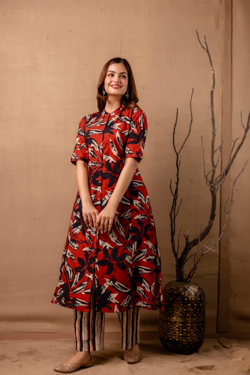 Red Black Printed A-line Co-ord Set