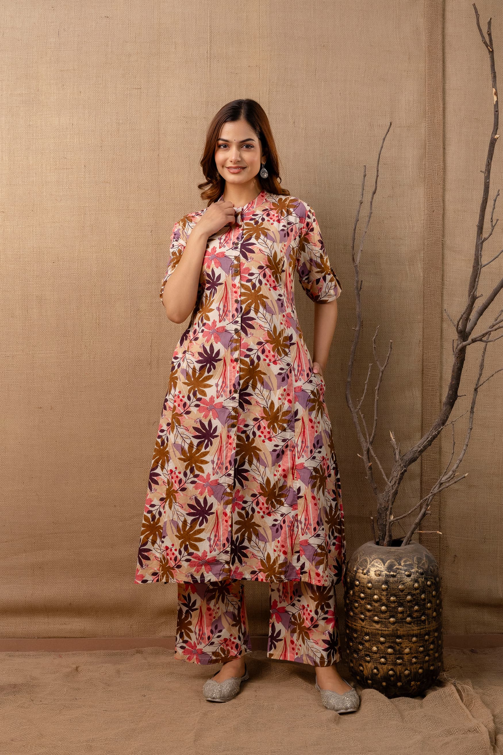 Multicolour Floral Printed A-line Co-ord Set