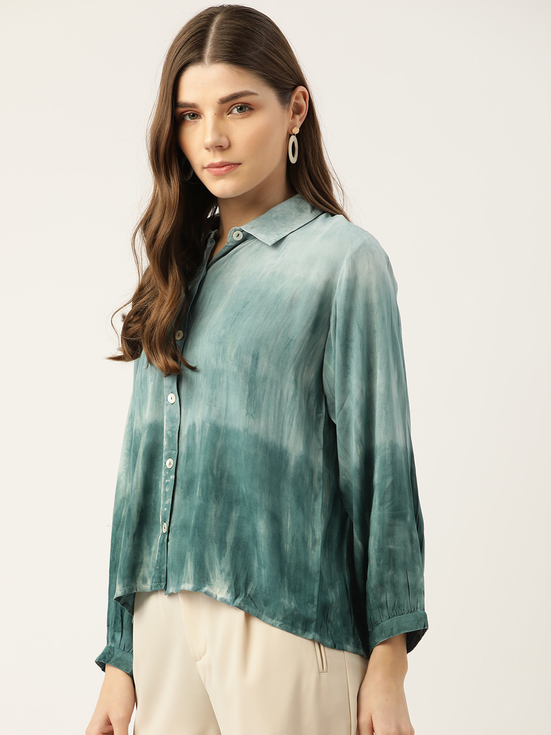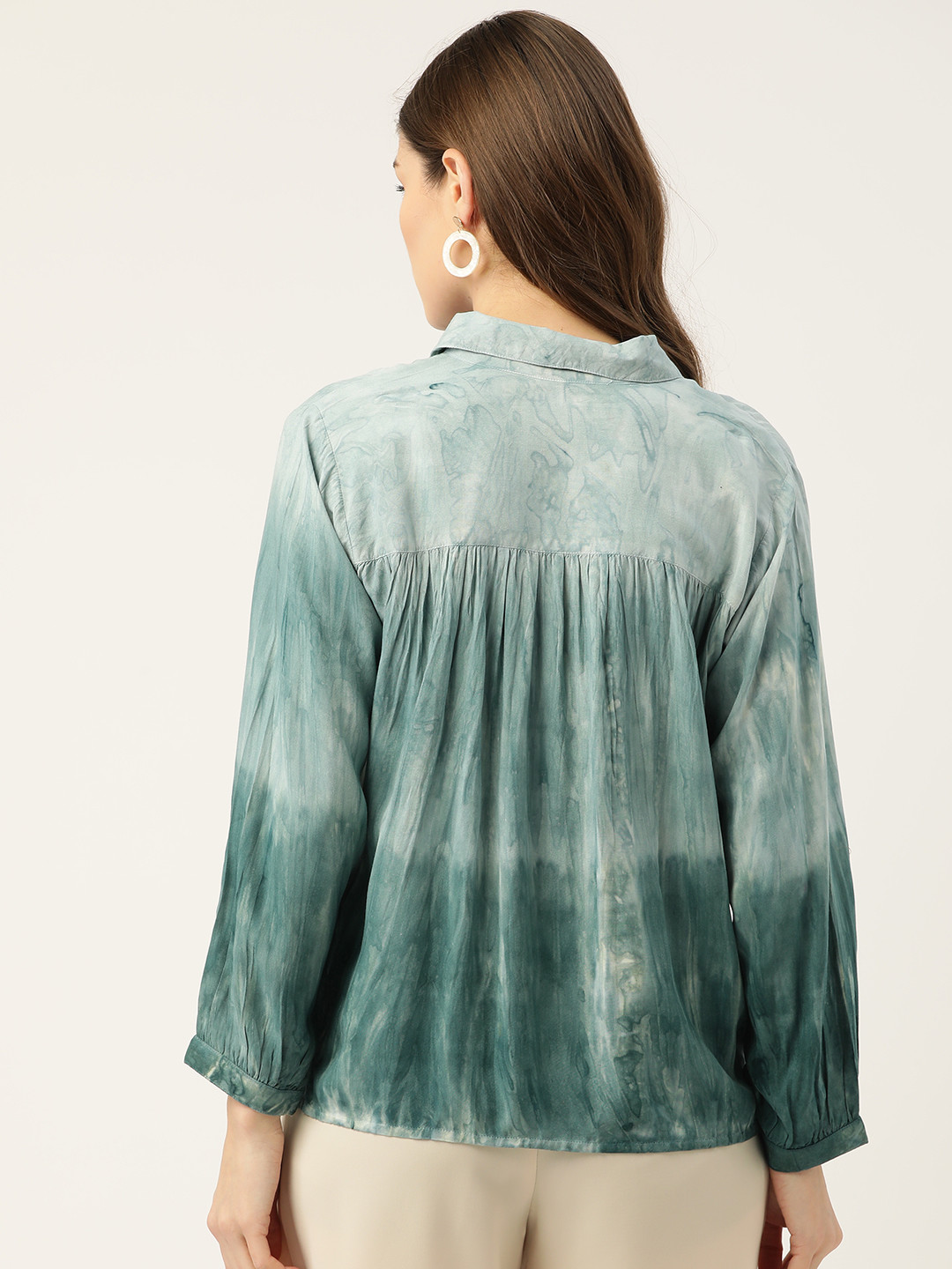 Green and off white regular shirt style top Tie and dye dyed